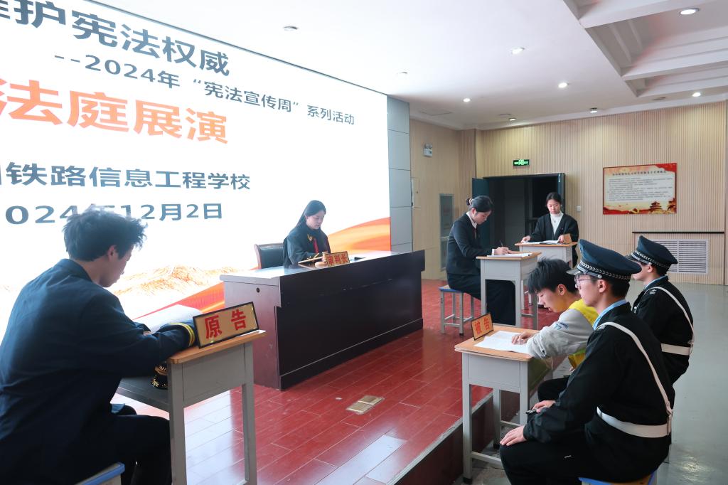 公共教学部思政教育创新团队联合校团委法治宣传社,举办了宪法知识竞赛、模拟法庭展演和宪法主题普法宣传等活动,创新普法体验,运用科技赋能普法,取得了良好成效,激发了同学们学习宪法的热情,加深了大家对宪法精神的理解。