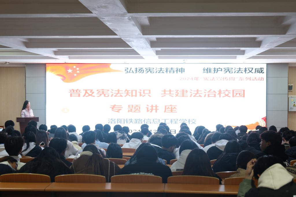 公共教学部思政教研室教师李焕在思政大讲堂开展了《普及宪法知识 共建法治校园》专题讲座,全校共有两百余名学生代表参加。讲座从新中国宪法发展历程和宪法的地位作用、宪法精神、宪法的主要内容等方面展开,加深了同学们对宪法的了解和认识,有助于培养学生在日常学习生活中遵守宪法、维护宪法权威的自觉性。