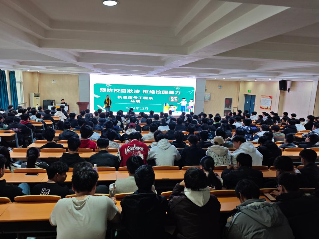 为进一步筑牢校园安全防线,规范学生行为,预防校园欺凌和校园暴力事件的发生,建立和谐文明积极向上的校园文化,12月2日下午,轨道信号工程系在我校思政大讲堂举办《预防校园欺凌,拒绝校园暴力》的专题讲座,本次讲座由轨道信号工程系学管主任马瑞主讲,轨道信号工程系全体班长、宿舍长、学生项目组近200名学生参加了讲座。