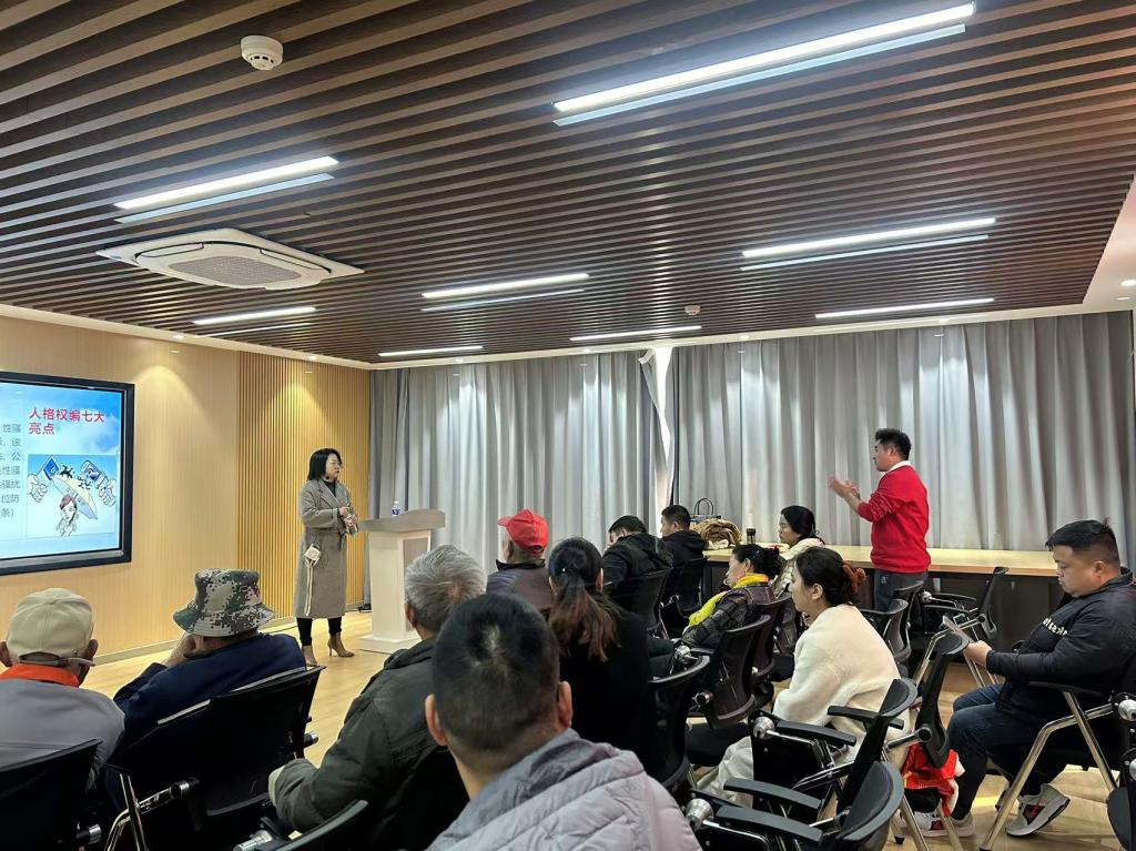 活动中,李律师凭借丰富的法律实践经验和专业知识,以通俗易懂的语言和生动鲜活的案例,深入浅出地剖析了民法典各条款的内涵与应用。居民们全神贯注地聆听,不时提出自己在生活中遇到的诸如校园贷、邻里矛盾等法律疑问,李律师均一一耐心解答,现场互动频繁,气氛热烈。