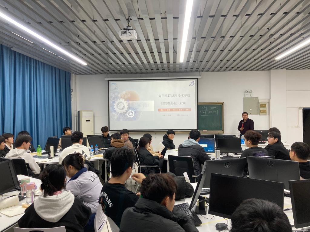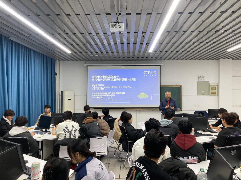 培训中,电子制造学院院长孙磊、制造中心总工程师邱华盛以及中兴通讯区域招聘总监蒋卫中,分别围绕中兴通讯的发展史、企业文化、供应链及智能制造,电子装联工艺装备、元器件、PCB和辅料技术基础,电子装联环境及物料管理、工艺技术基础等内容为同学们进行深入讲解。