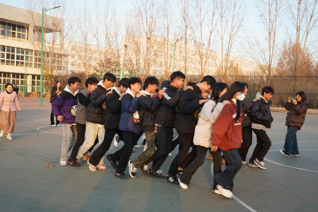 最后,活动在“齐心协力向前冲”游戏中画上了圆满的句号。学生们分组排成一列,每两人间放置一个篮球,他们需要步调一致,确保篮球不掉落并迅速到达终点。面对篮球掉落、速度不一等突发状况,大家相互支持,冷静应对,迅速调整策略,共同克服难关。这一环节不仅极大地增强了团队的凝聚力,更让学生学会在压力下保持情绪稳定,以平和的心态迎接每一个挑战。