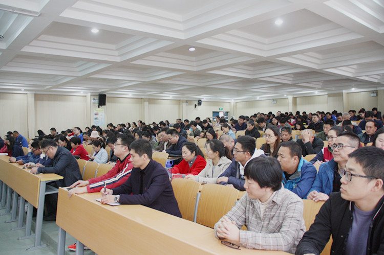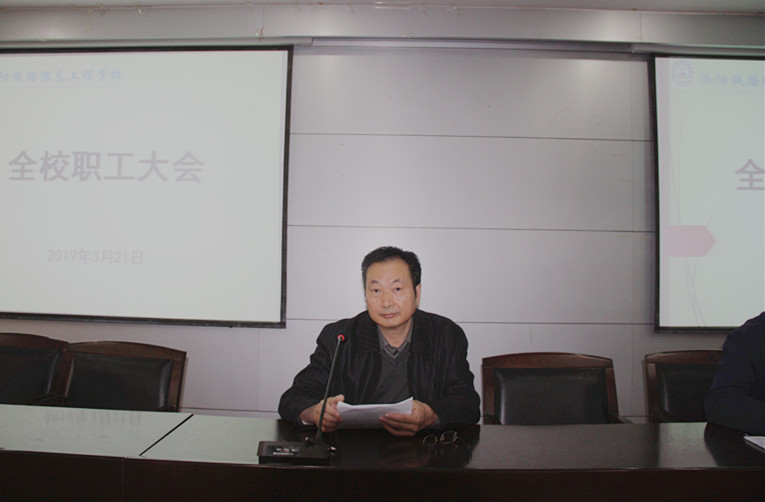 3月21日下午,我校在一号实训楼二楼多功能报告厅召开全校职工大会,对我校2019年全面从严治党工作进行部署。