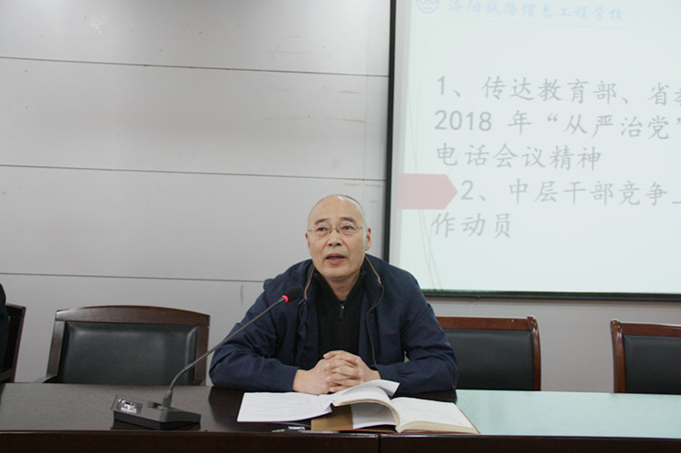 随后,韩校长对我校中层干部竞聘上岗工作做出安排部署,对我校目前中层干部管理使用情况进行了说明,并对本次中层干部竞聘上岗工作提出具体要求,并由副校长杨建光详细解读了我校《中层干部竞聘上岗实施方案》(洛铁校〔2019〕14号)文件。