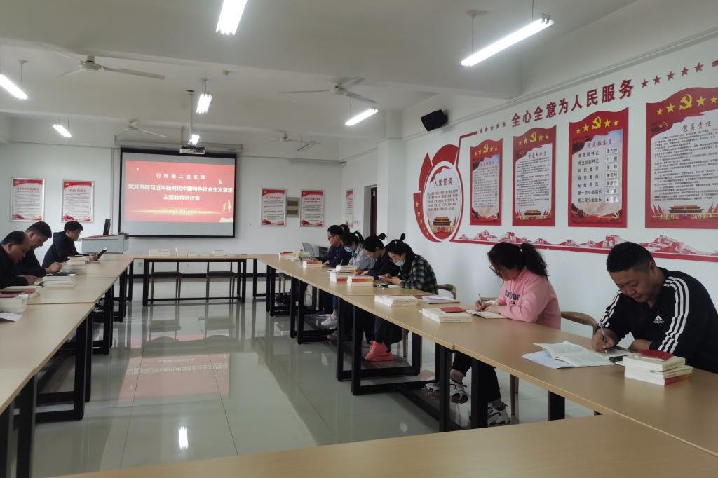 4月27日下午,根据学校党委的统一部署,行政第二党支部在图书信息楼二楼支部党员活动室,组织开展学习贯彻习近平新时代中国特色社会主义思想主题教育集体研讨会,支部全体党员参加。会议由支部副书记付俊主持。