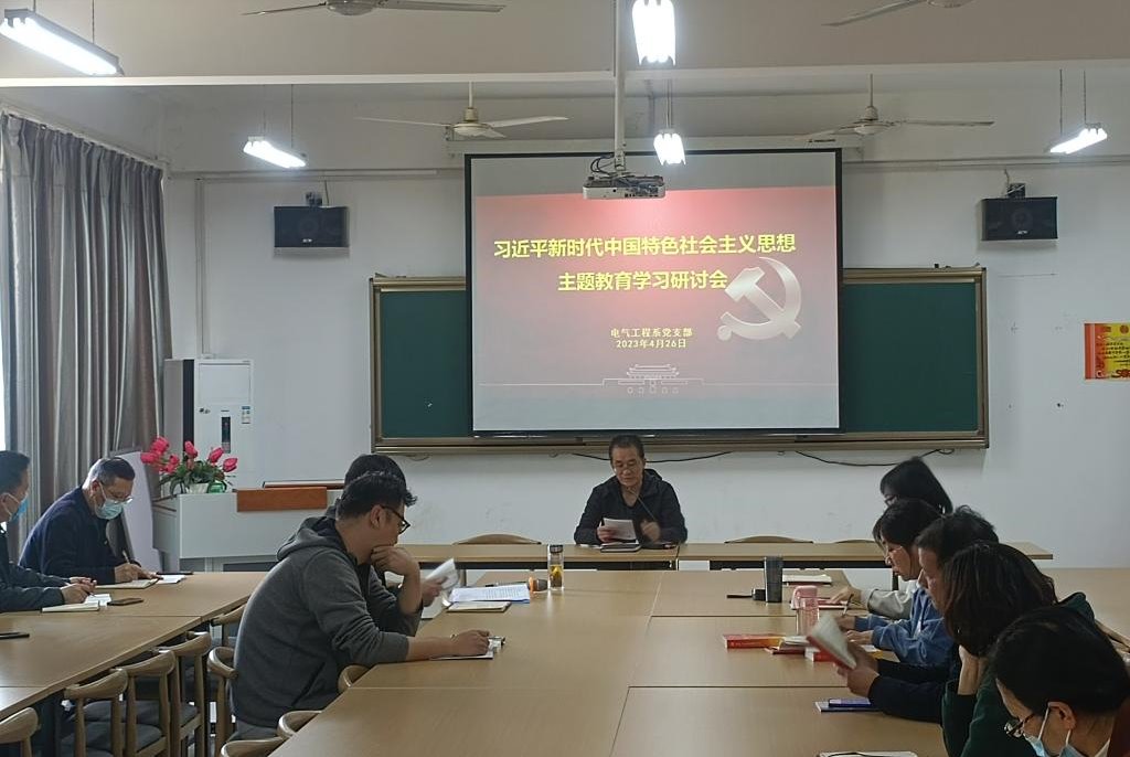 为贯彻落实校党委关于学习习近平新时代中国特色社会主义思想主题教育的相关工作部署安排,4月26日下午,电气工程系党支部在1号教学楼338室组织开展了学习研讨会议,会议由系党支部副书记姚建华主持。